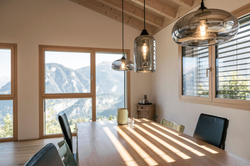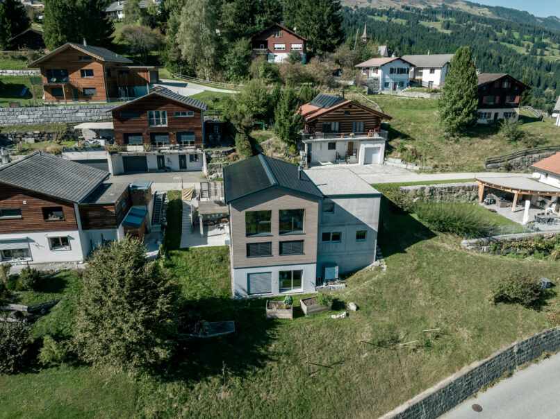 Luft-Wasser-Wärmepumpe, kontrollierte Raumlüftung, Fussbodenheizung mit Kühlfunktion, PV-Anlage mit 8.055 kWp, Minergie-P zertifiziert GR-189-P